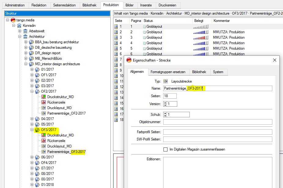 Für das Layout ergibt sich aus diesem Geschäftsmodell folgende Aufgabenstellung: Von einer Ausgabe zur nächsten bleibt ein relativ großer “Stamm” von Adresseinträgen erhalten, wobei sich aber auch stets kleine Veränderungen ergeben, weil Buchungen auslaufen oder neu beginnen. Das Auftragsmanagement (Fr. Katja Mayr) sammelt die Veränderungen seit der vorherigen Ausgabe und übergibt sie ans Layout, das die Änderungen dann – auf Basis des Layouts der vorherigen Ausgabe – einpflegt.