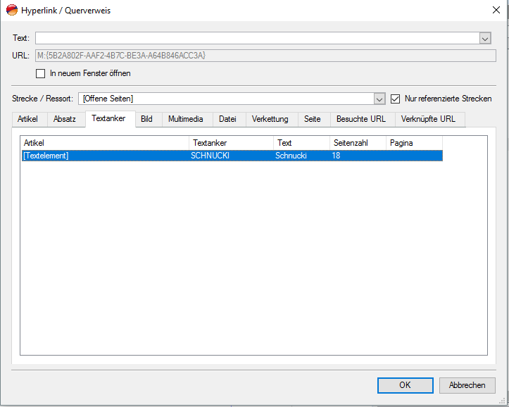 3. Reiter „Textanker“ und die o.g. Textstelle auswählen