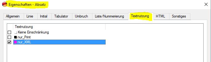 • Welche Absatzformate genau brauchen Sie mit eingeschränkter Textnutzung (“nur_XML” oder “nur_Print”)