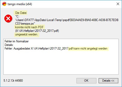 Die Datei “… .ps” konnte nicht nach PDF “…” umgesetzt werden