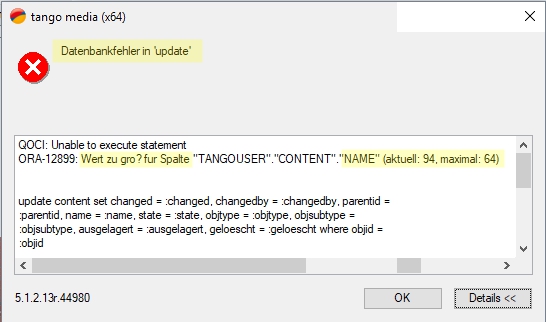 Datenbankfehler in “insert”  /  Datenbankfehler in “update”