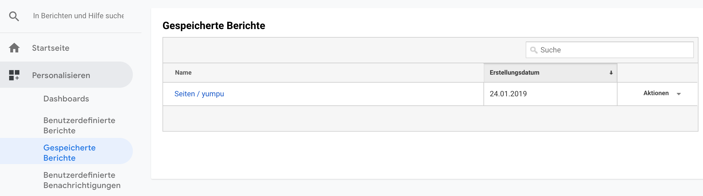 Dann finden Sie ihn später unter “Personalisieren” => “Gespeicherte Berichte”