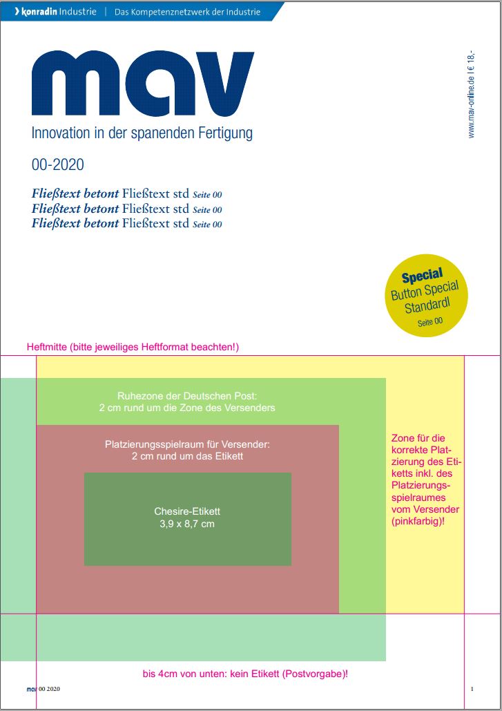 - Beispiel Beschaffung aktuell oder Medizin & Technik: Hier wird auch die Vorderseite der Flappe verkauft und nur der Kopf des Titels wiederholt. Hierbei wird ein Teil der Ruhezone auch zwangsweise in die Titelflappe hineinragen, sodass hier Frau Fiori quasi automatisch einen Premiumversand oder alternativ ein Deckblatt in Auftrag geben muss.