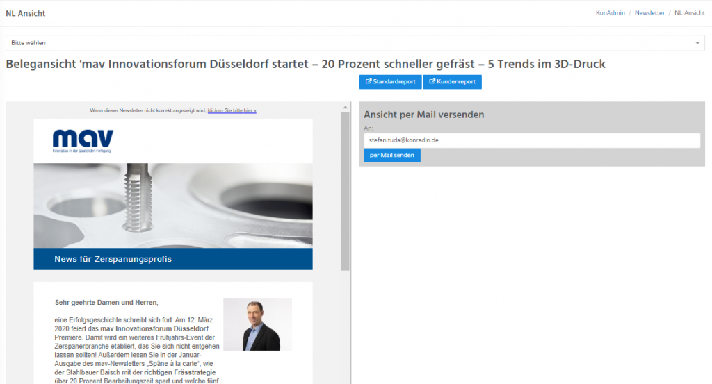 Klicken Sie in das Aufklappmenü, um das gewünschte Mailing aufzurufen.